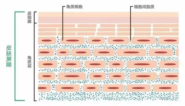 在歷經(jīng)成熟必備的所有變化后,這些細(xì)胞將完成自己的使命,即便已經(jīng)死亡,但仍然可以保護(hù)位于下方的細(xì)胞,直至死皮細(xì)胞從皮膚表面脫落。就功能層面而言,最外層的皮膚(即角質(zhì)層)是由老化死細(xì)胞組成,旨在防止水分以蒸發(fā)的形式(通過(guò)汗腺分泌的除外)流失。這一層皮膚就好比一層非常稀薄的“磚石和砂漿”,由老化的死細(xì)胞(即“磚石”)和特殊的脂質(zhì)分子(即“砂漿”)組成[4]。新生皮膚細(xì)胞推動(dòng)老化的細(xì)胞不斷脫落。